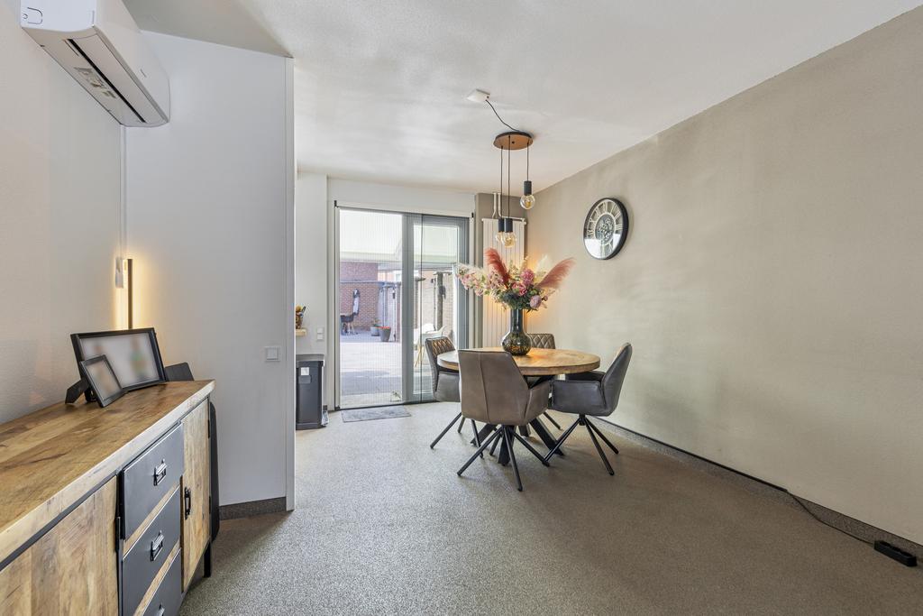 De ruime en zonnige woonkamer is het hart van het huis. Dankzij de grote ramen komt er veel natuurlijk licht naar binnen, waardoor de ruimte heerlijk licht en open aanvoelt. De moderne, open keuken is voorzien van inbouwapparatuur die tussen 2022 en 2024 volledig vernieuwd is, zodat je kunt genieten van de nieuwste snufjes. De hal biedt toegang tot een separaat toilet en leidt naar de eerste verdieping.